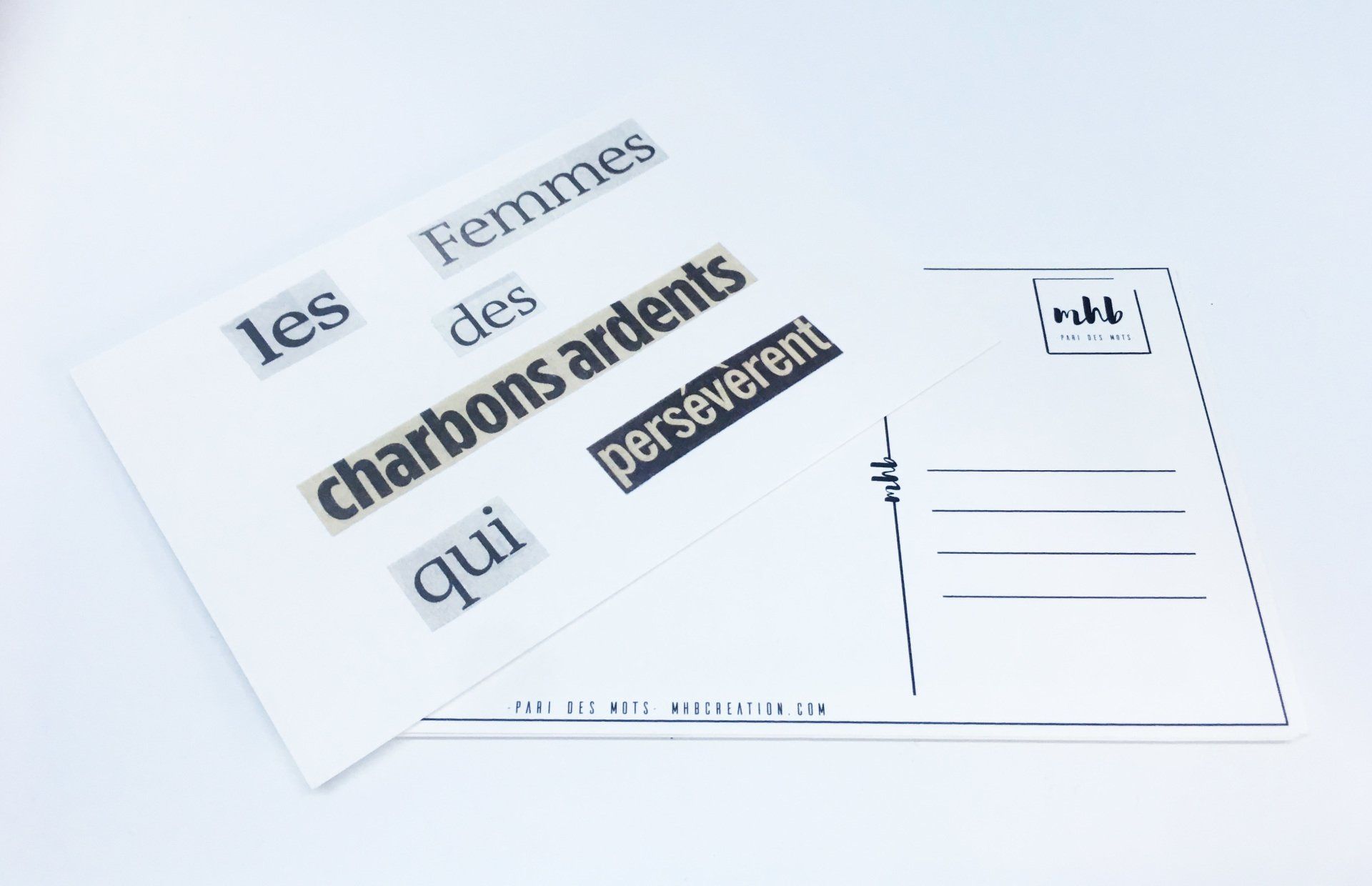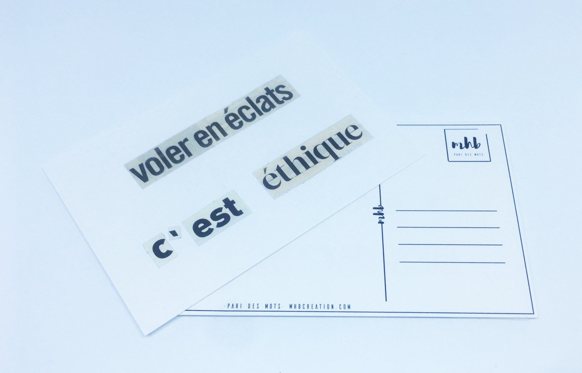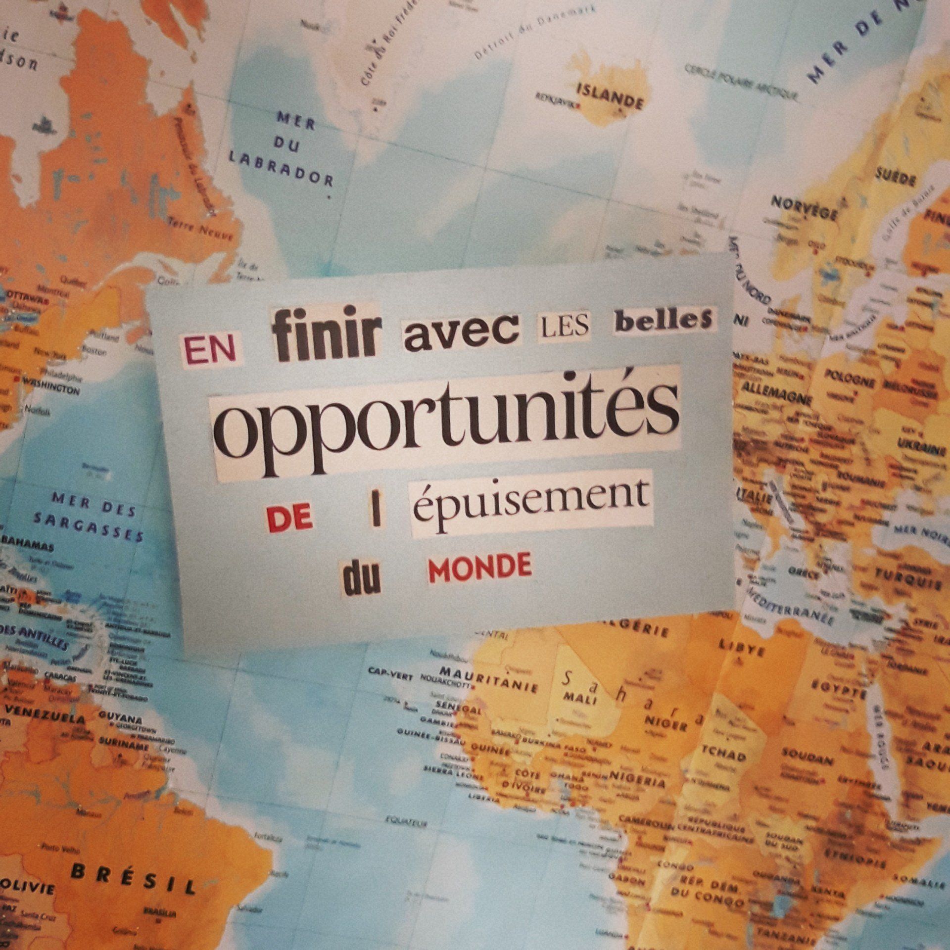 Cela fait plus de 20 ans que je pratique l’exercice du collage. Sous influence littéraire et poétique à coup sûr, car les mots des autres m’ont sauvée. Trouver dans les mots des autres une phrase, une formule qui correspondent exactement au ressenti de votre monde intérieur jamais exprimé jusque là, parce qu’à fleur de mots, c’est une libération, un permis de vivre renouvelé.